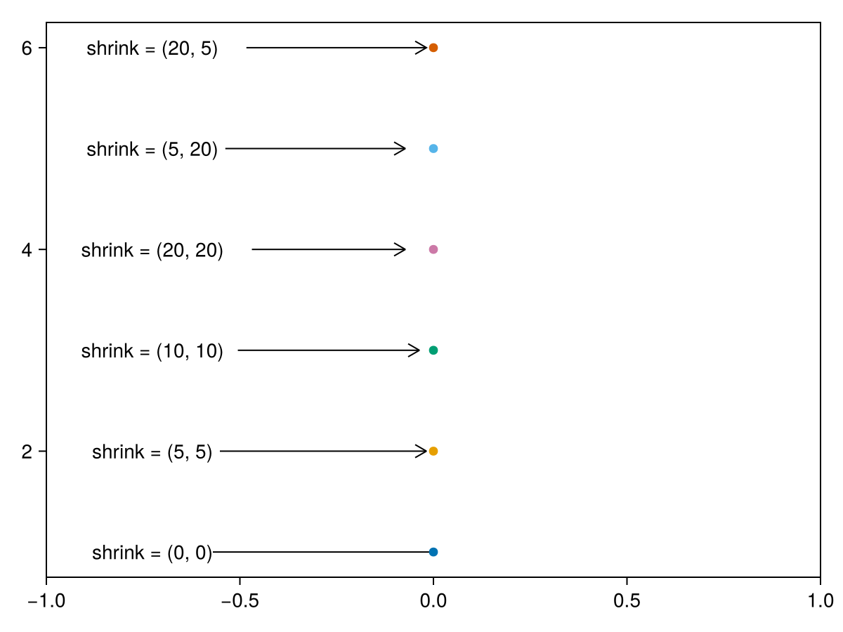 annotation!(ax, -200, 0, 0, i; text = "shrink = $shrink", shrink, style = Ann.Styles.LineArrow())
