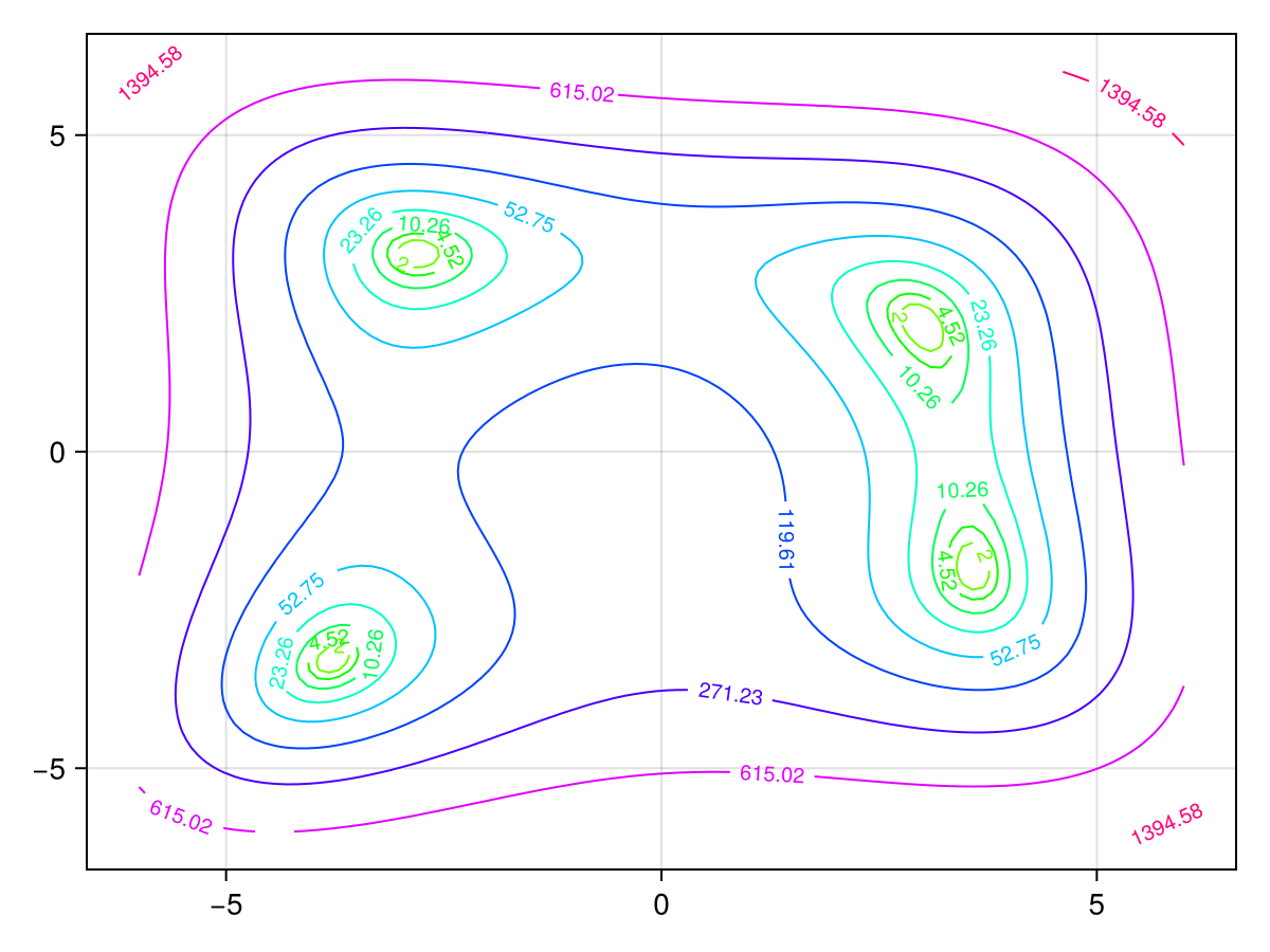 f, ax, ct = contour(x, y, z; labels=true, levels, colormap=:hsv, colorscale)