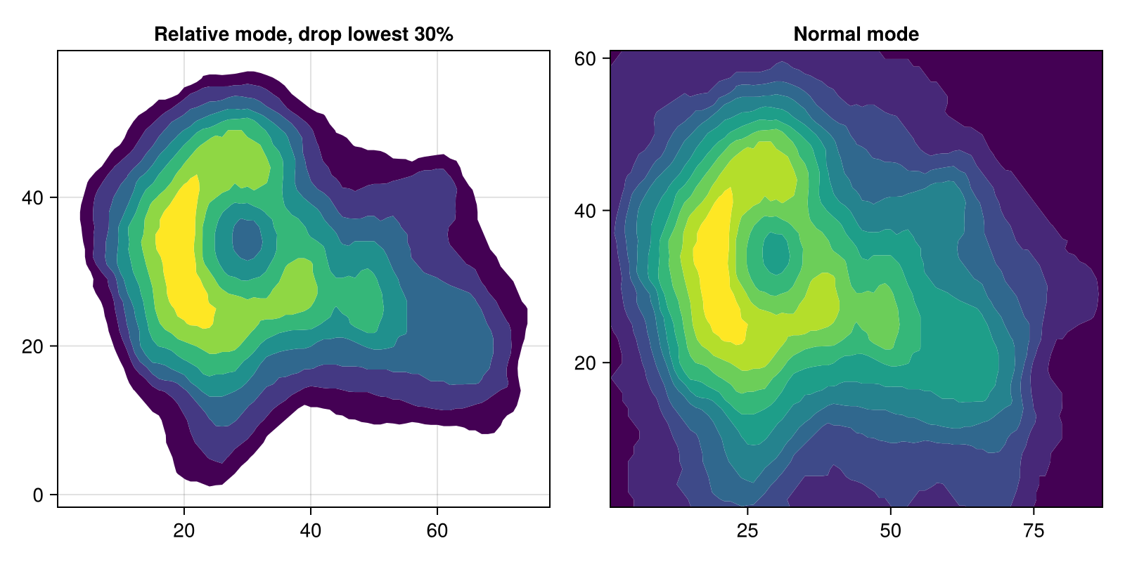 Axis(f[1, 1], title = "Relative mode, drop lowest 30%")
