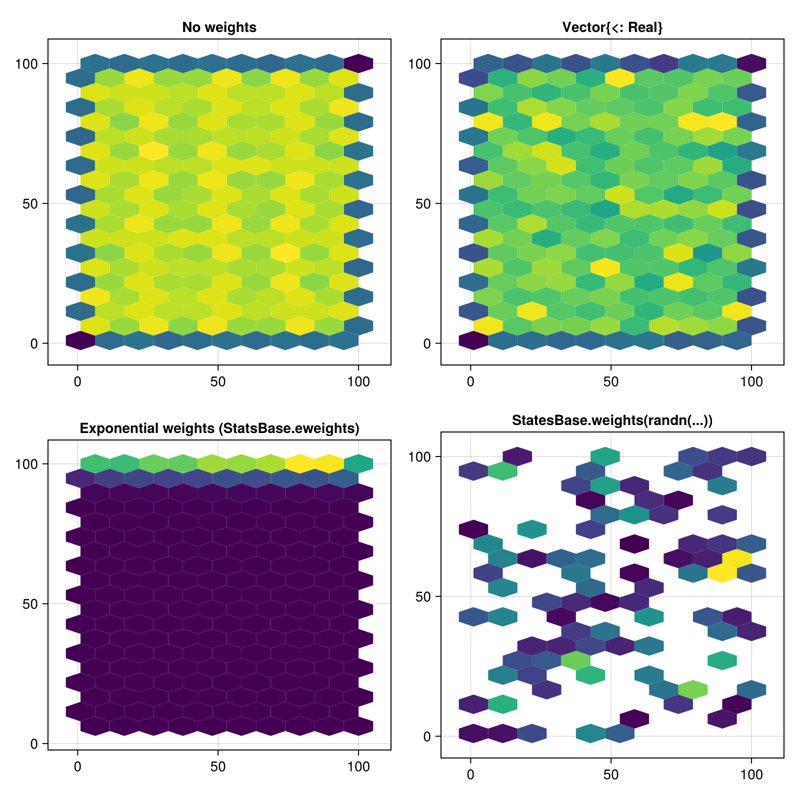 weights = [nothing, rand(length(points)), Makie.StatsBase.eweights(length(points), 0.005), Makie.StatsBase.weights(randn(length(points)))]
