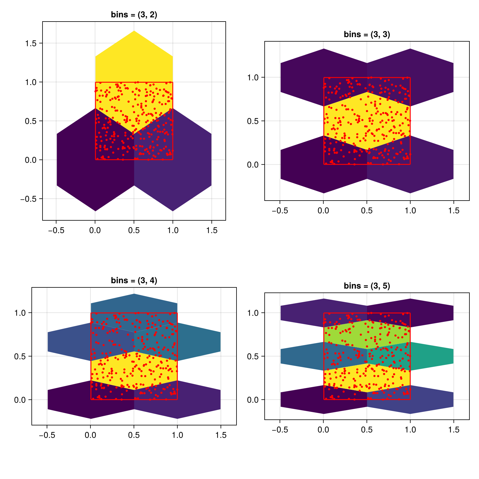 hexbin!(ax, x, y, bins = (3, i))