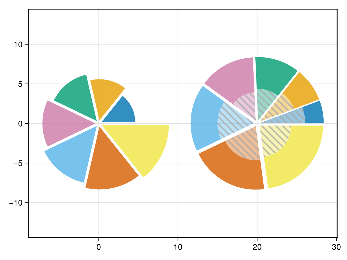 pie!(ax, 10 .+ Δx, 3 .+ Δy, vs; color=cs, offset_radius=0.2)