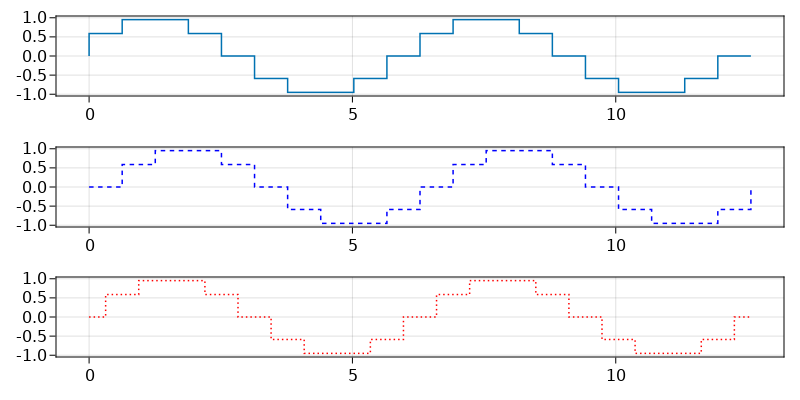stairs(f[2, 1], xs, ys; step=:post, color=:blue, linestyle=:dash)
