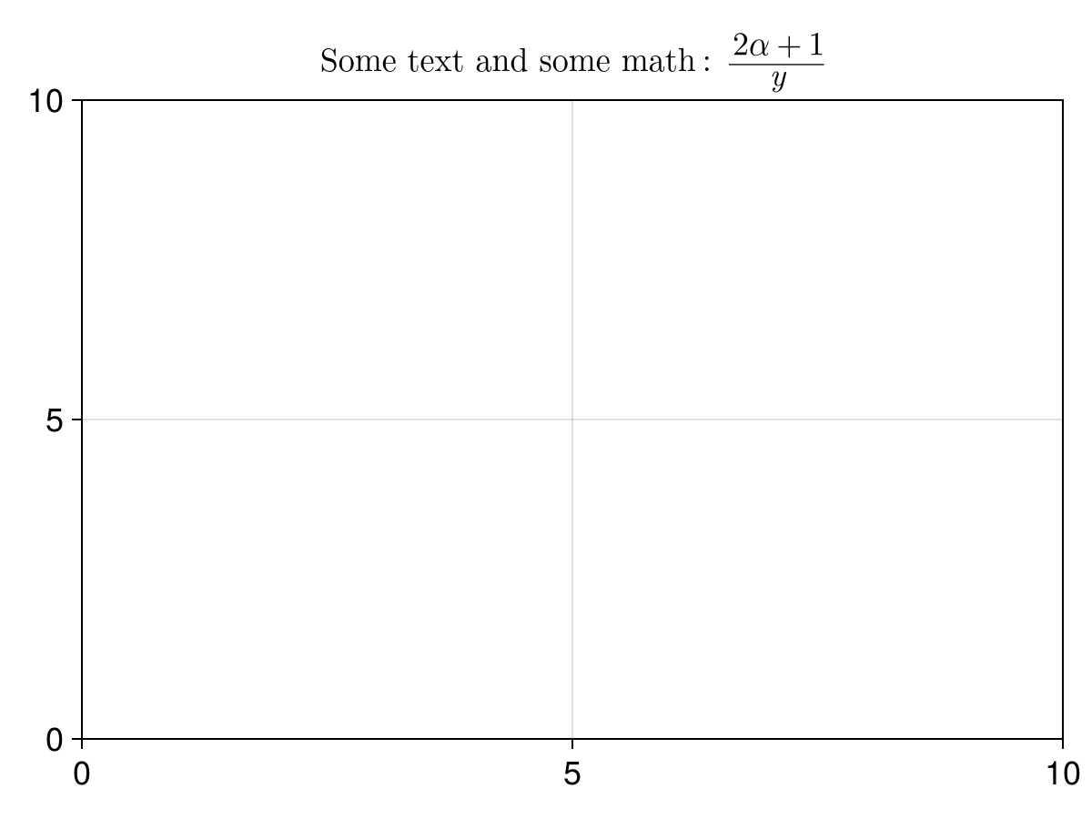 Axis(f[1,1], title=L"Some %$(t) and some math: $\frac{2\alpha+1}{y}$")