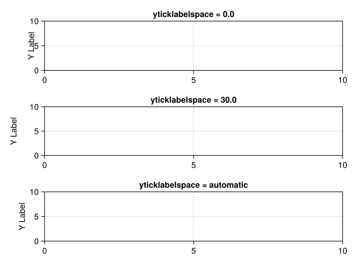 Axis(f[3, 1], ylabel = "Y Label", yticklabelspace = Makie.automatic, title = "yticklabelspace = automatic")