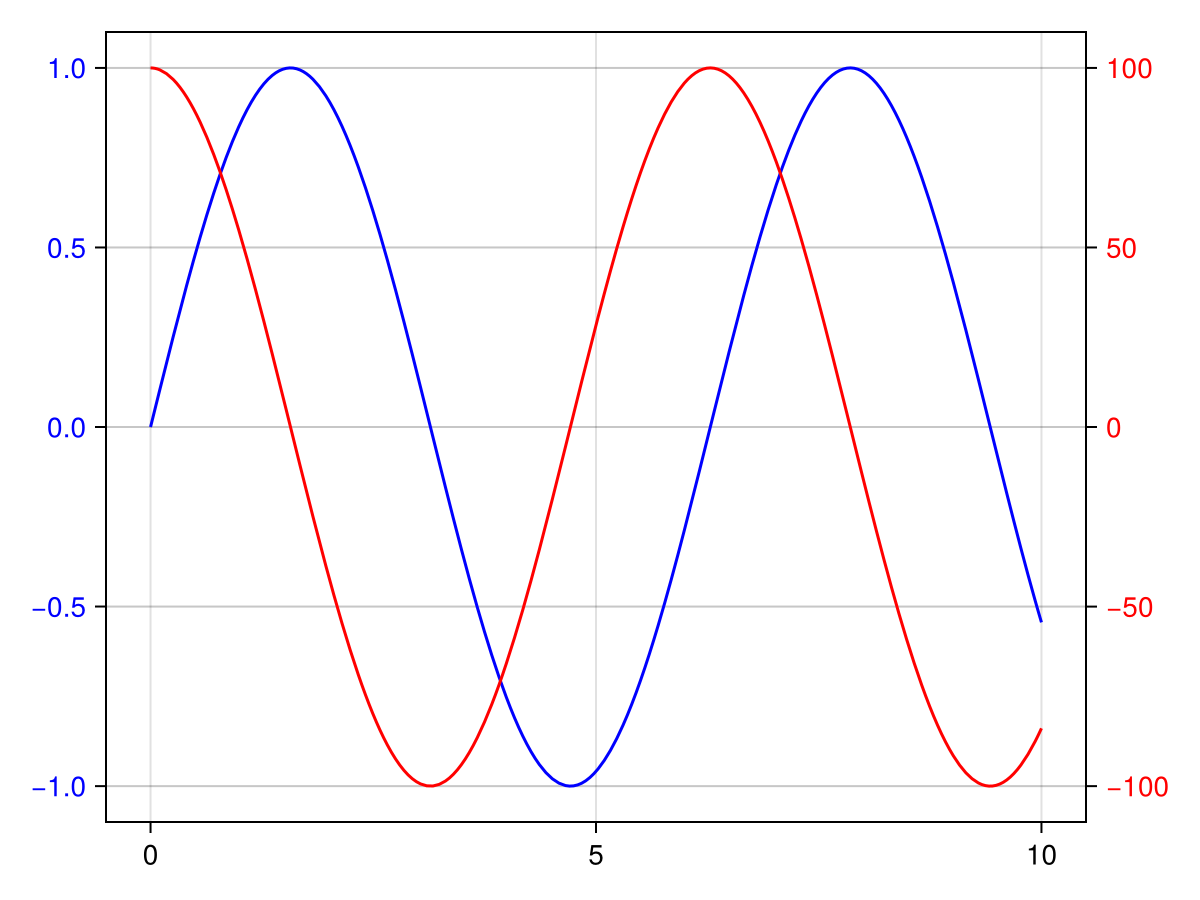 ax2 = Axis(f[1, 1], yticklabelcolor = :red, yaxisposition = :right)