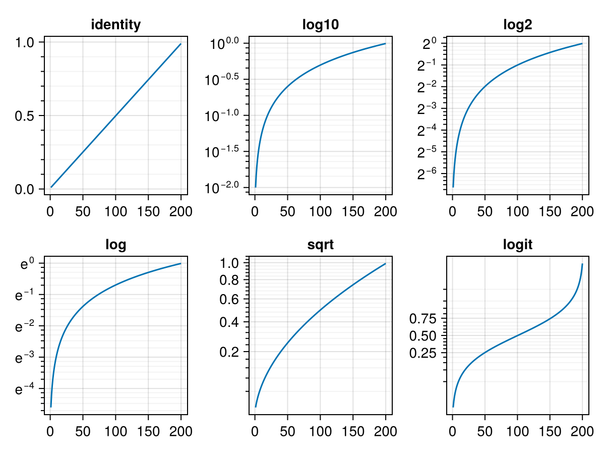Axis(f[row, col], yscale = scale, title = string(scale),