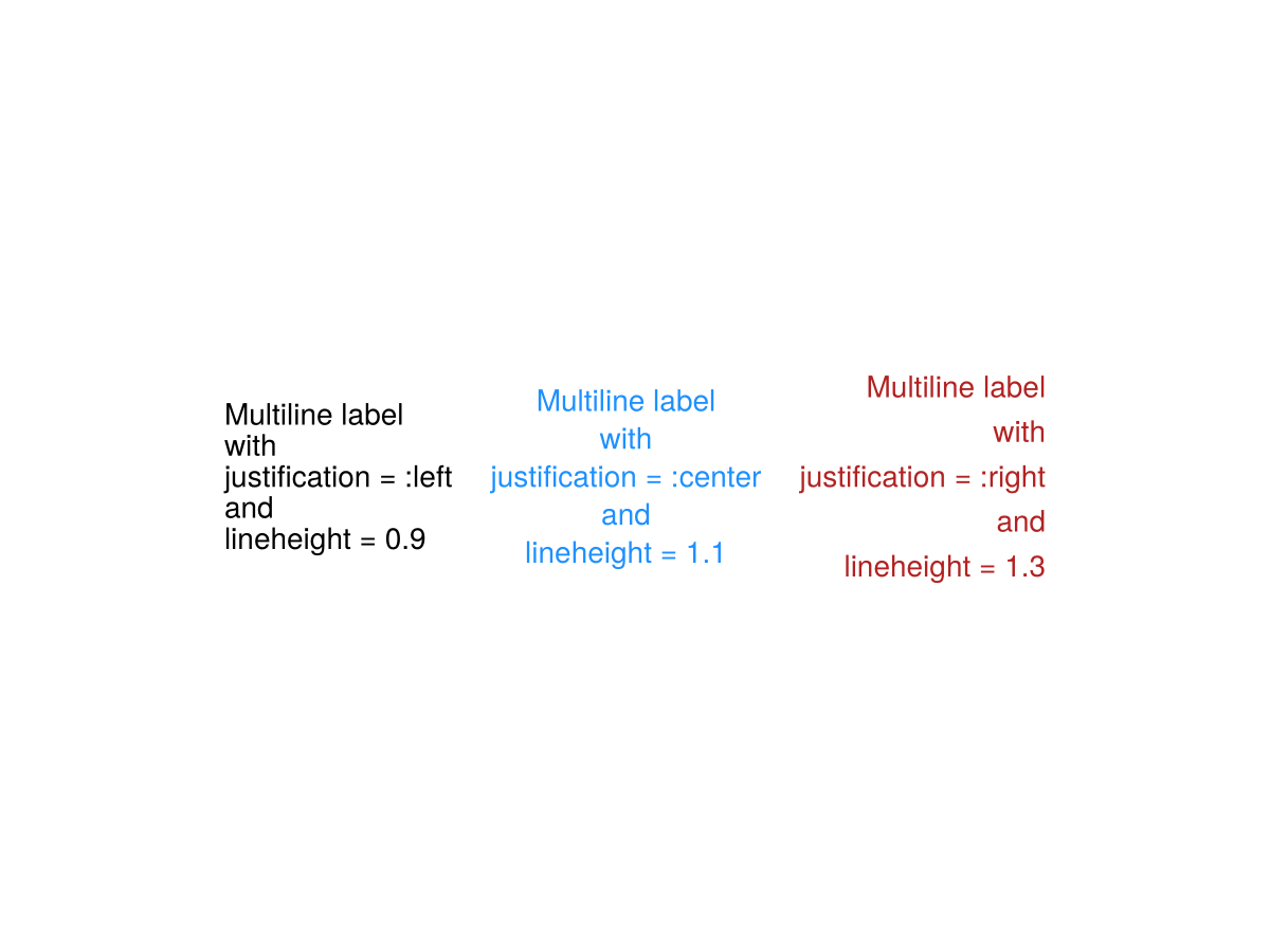 "Multiline label\nwith\njustification = :left\nand\nlineheight = 0.9",