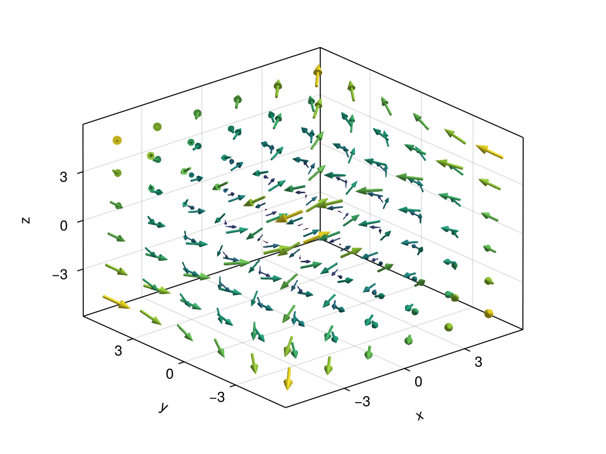 arrows3d(x, y, [z], f::Function)Plots arrows as 3D shapes.