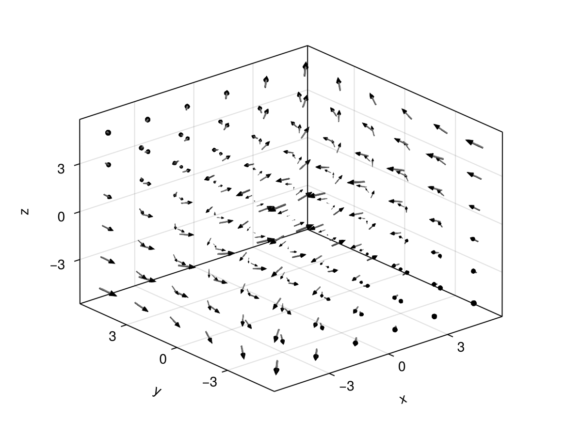 arrows3d!(ax, ps, vs, shaftlength = 50,