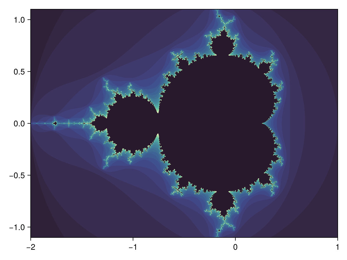 heatmap(-2:0.001:1, -1.1:0.001:1.1, mandelbrot,