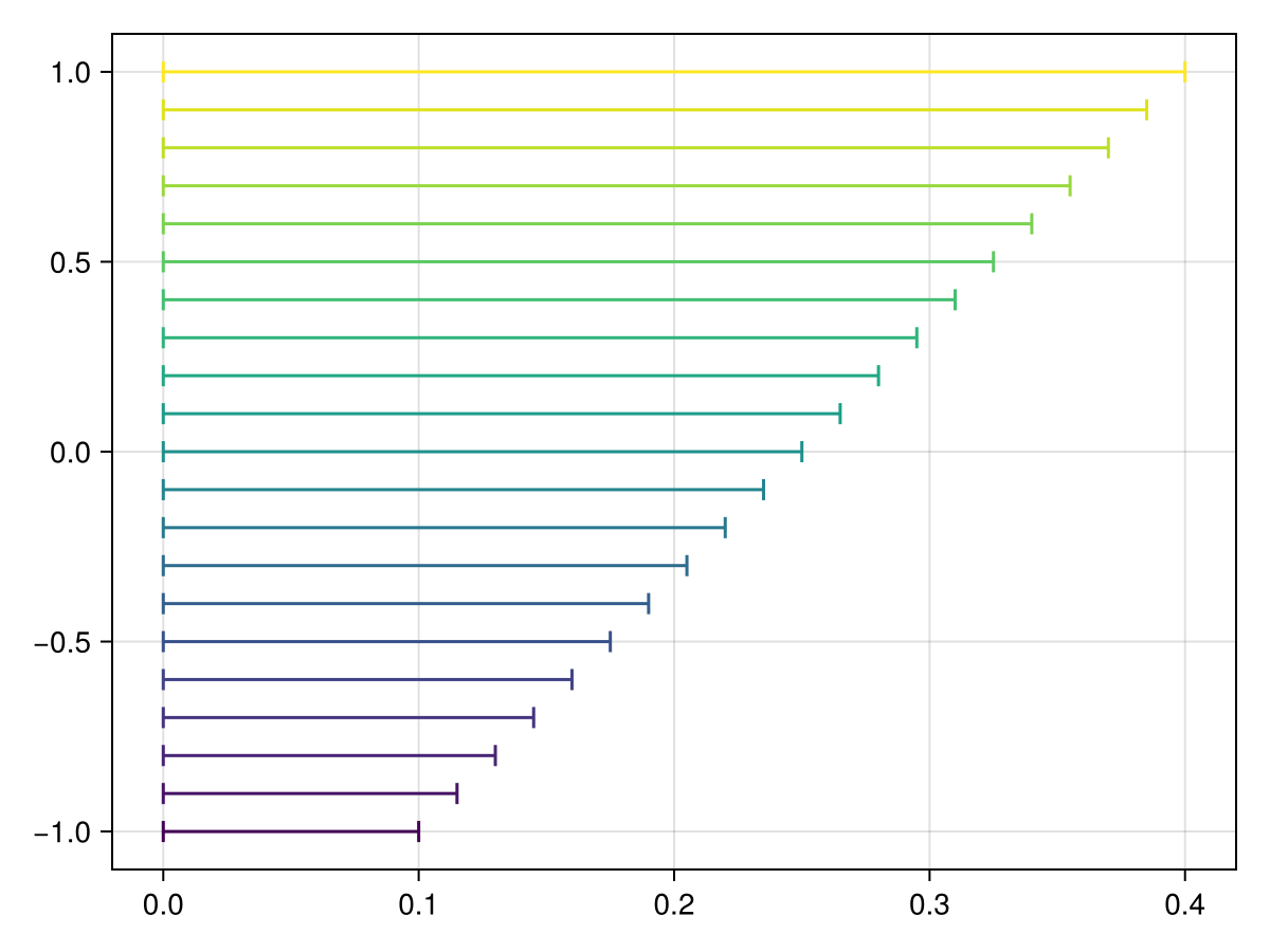 rangebars!(vals, lows, highs, color = LinRange(0, 1, length(vals)),
